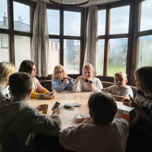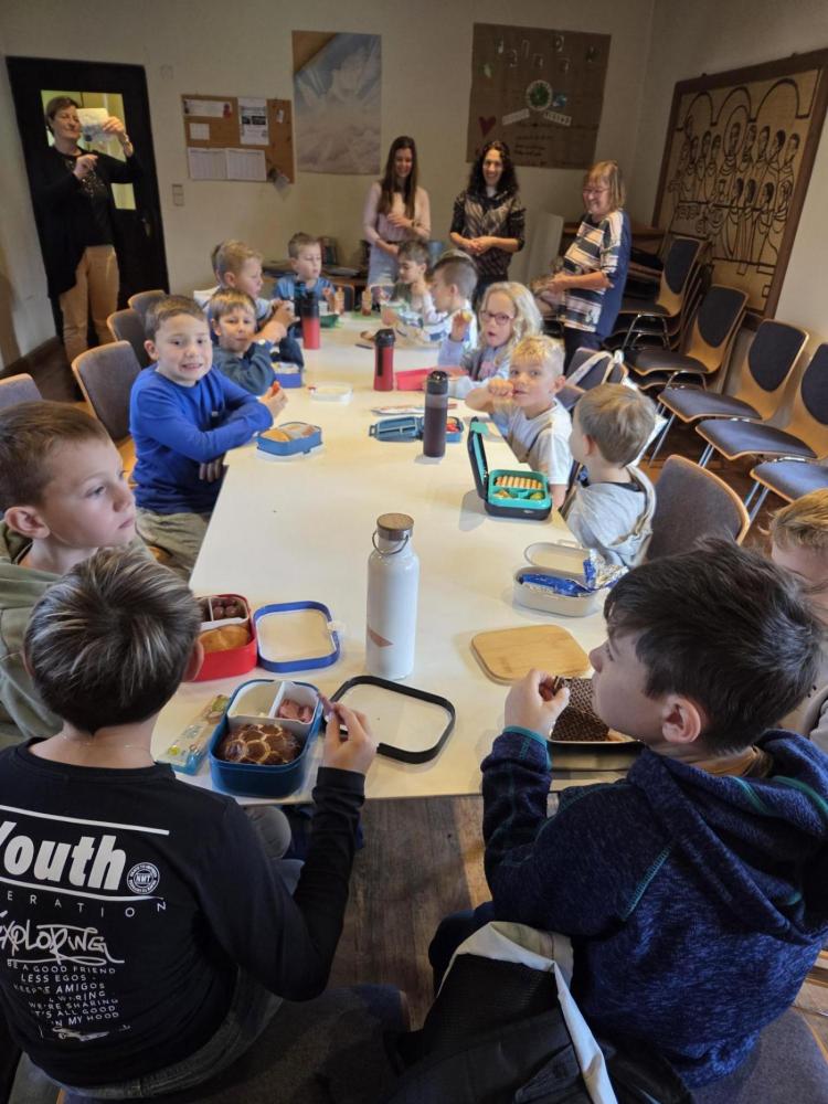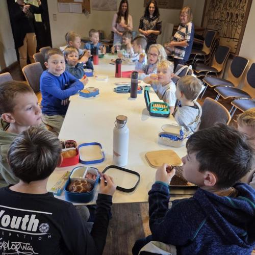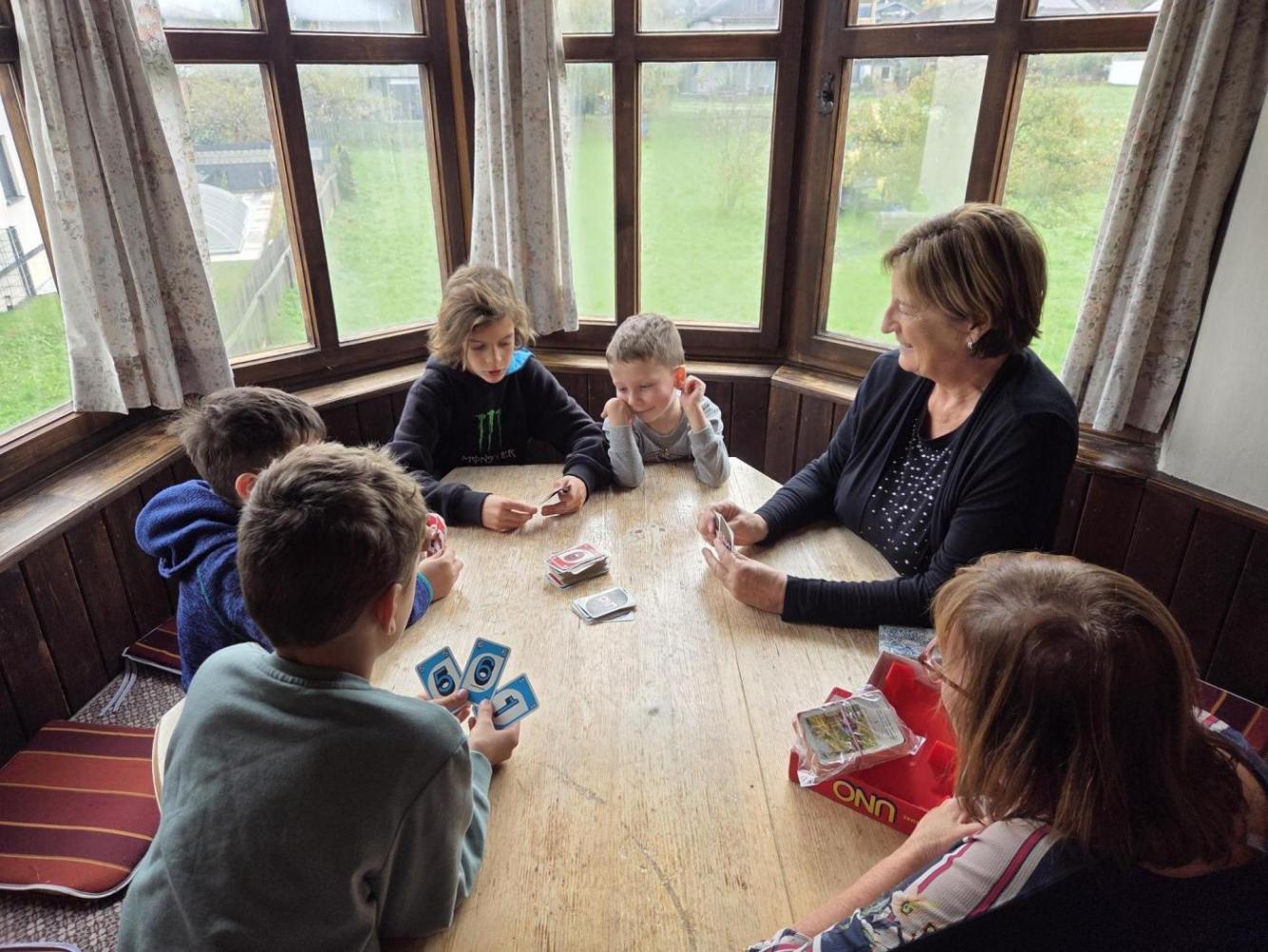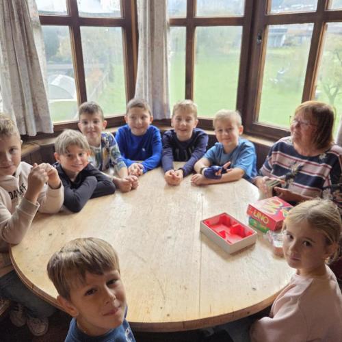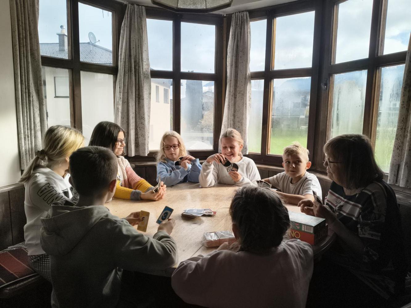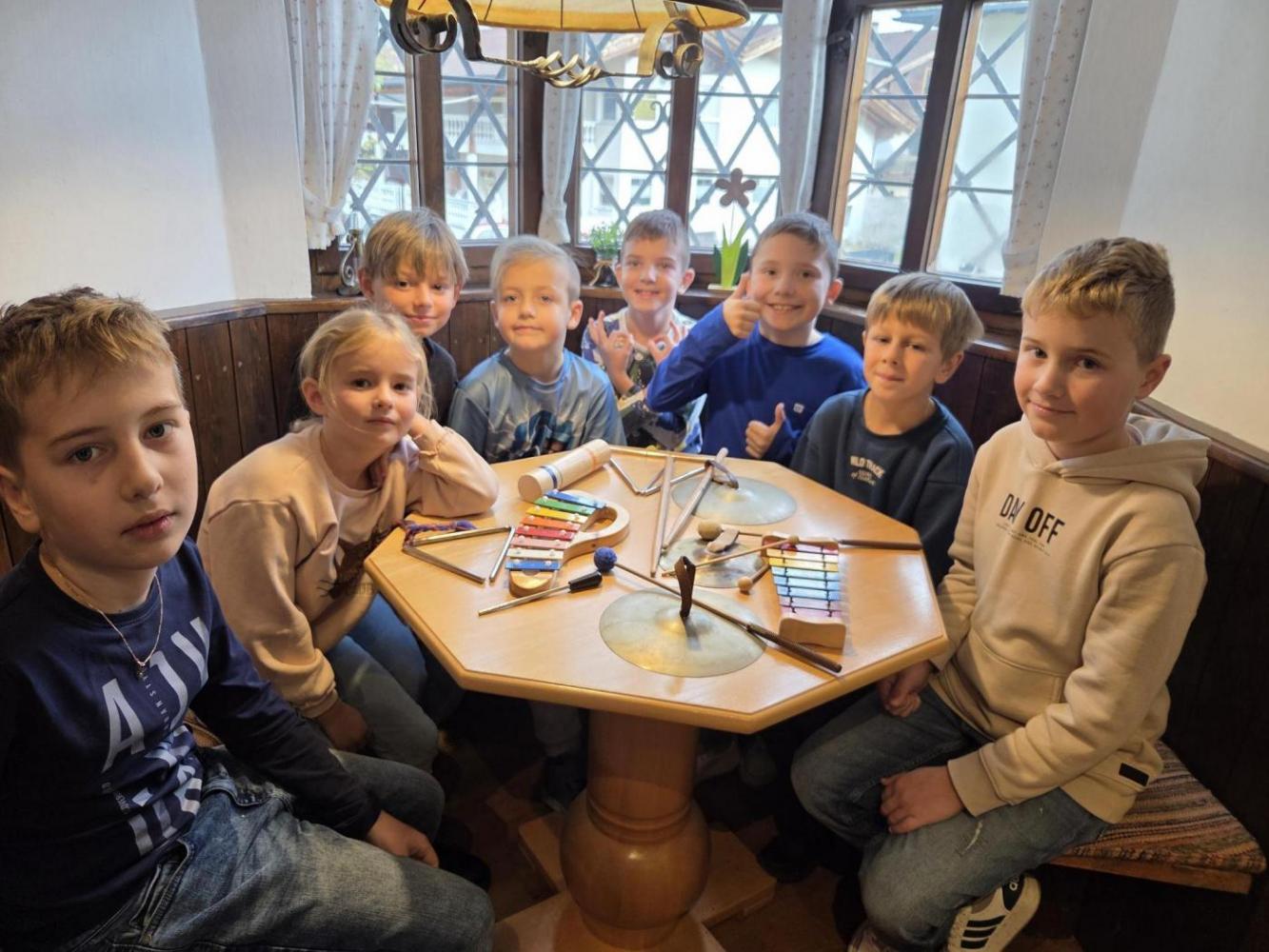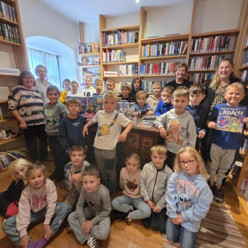 In der Bücherei angekommen, stärkten wir uns zuerst mit einer kleinen Jause, bevor es in drei Gruppen weiterging. Bei der ersten Station wurde die Klanggeschichte „Drachen machen Krach“ vorgelesen, und die Kinder durften sie mit Instrumenten lebendig begleiten. Bei der zweiten Station konnte nach Herzenslust in den Regalen gestöbert werden, und jedes Kind durfte sich ein oder gleich mehrere Bücher zum Ausleihen aussuchen. An der dritten Station wurde am Spieletisch eifrig UNO und Quartett gespielt – mit viel Lachen und guter Laune.
