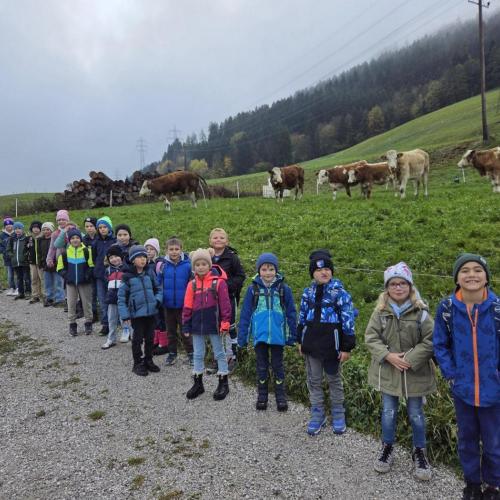 Am letzten Schultag vor den Herbstferien machten wir einen Ausflug zur Bücherei in Kolsass. Zum Glück spielte das Wetter mit, und so konnten wir zu Fuß hinunter spazieren. Der Weg verging wie im Flug, denn unterwegs gab es viel zu entdecken und zu erzählen.