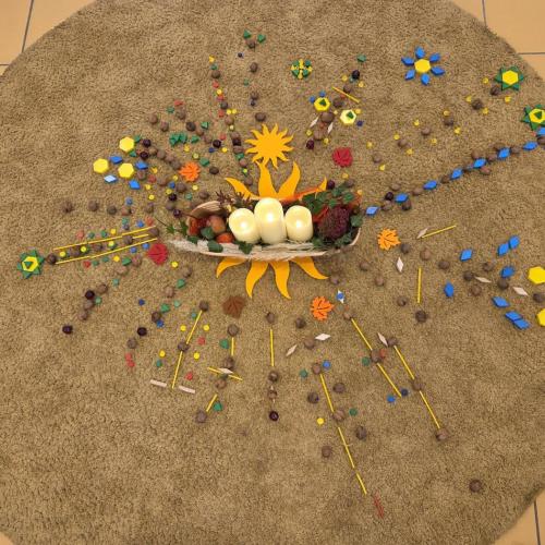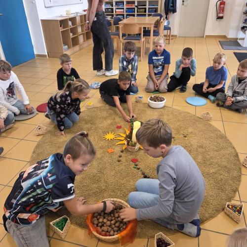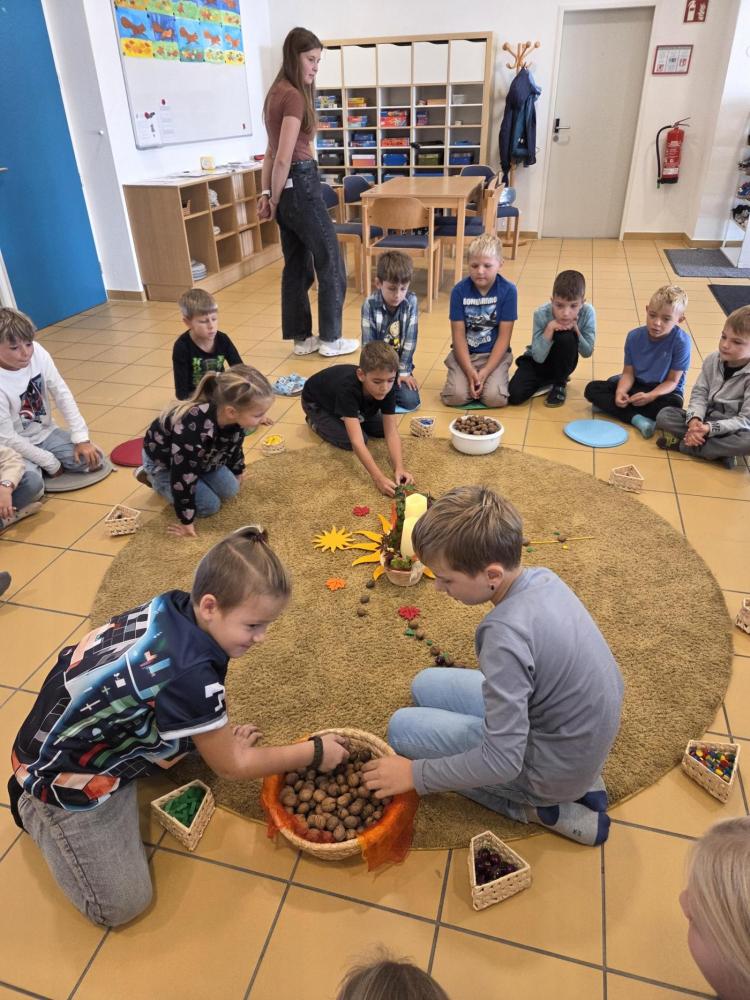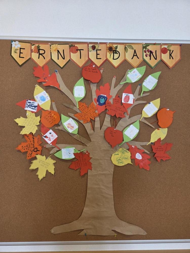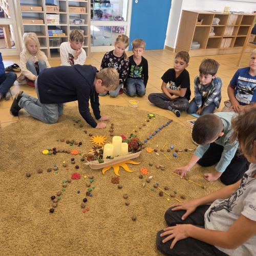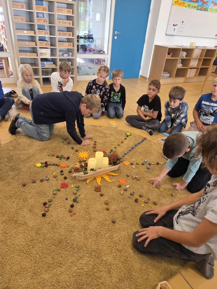 Mit viel Eifer gestalteten die Kinder ein farbenfrohes Herbstmandala, übten sich in einer besinnlichen Stilleübung und schmückten einen Baum mit selbstgestalteten Blättern, auf denen stand, wofür sie dankbar sind.