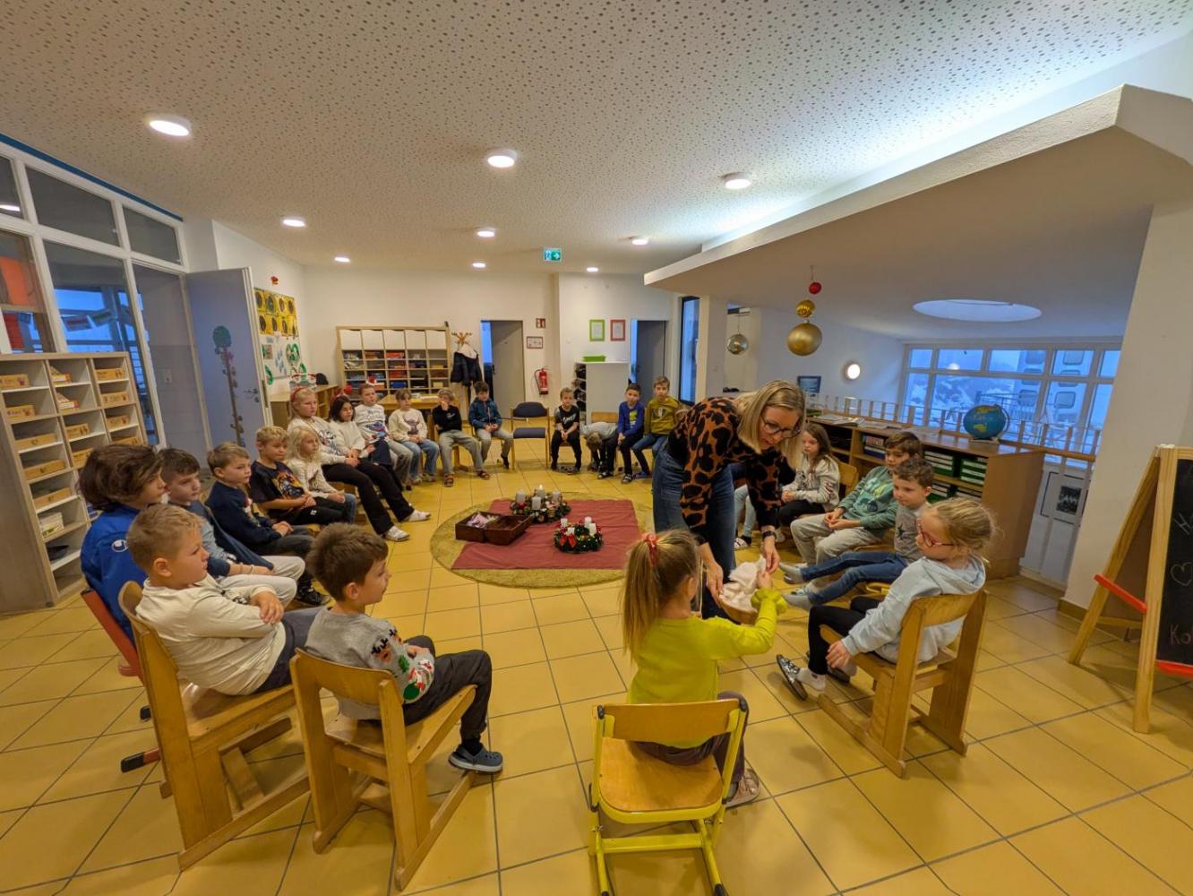 Gemeinsam versammelten sich alle Kinder und Lehrpersonen, um sich auf die besondere Zeit des Jahres einzustimmen. Mit festlichen Liedern und herzerwärmenden Geschichten umrahmt, wurde der Beginn der Adventzeit gefeiert. Ein besonderer Moment war das Auslosen der Wichtelkinder, das bei allen für große Freude und Spannung sorgte.