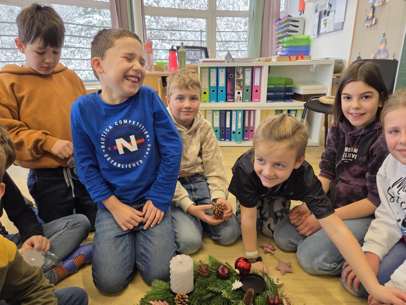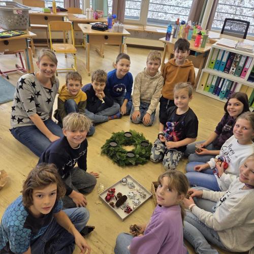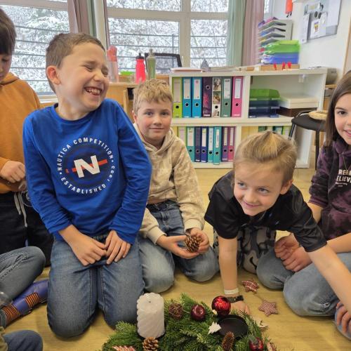 Alle Kinder konnten sich aktiv einbringen, verschiedene Materialien ausprobieren und ihre ganz persönlichen Ideen umsetzen. Am Ende waren sie sichtlich stolz auf ihre selbstgebundenen Adventkränze, die nun in den Klassenräumen für eine stimmungsvolle Adventszeit sorgen werden.