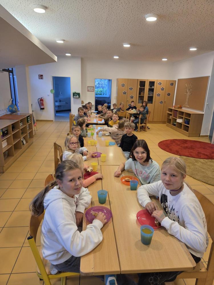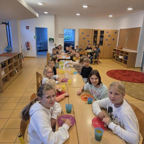 Es war schön zu sehen, wie alle miteinander lachten, plauderten und sich über das gemeinsame Essen freuten. Die Kinder genossen das gemütliche Beisammensein und den Start in den Tag in fröhlicher Atmosphäre.