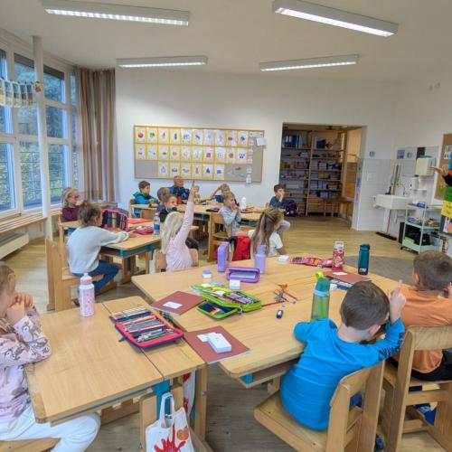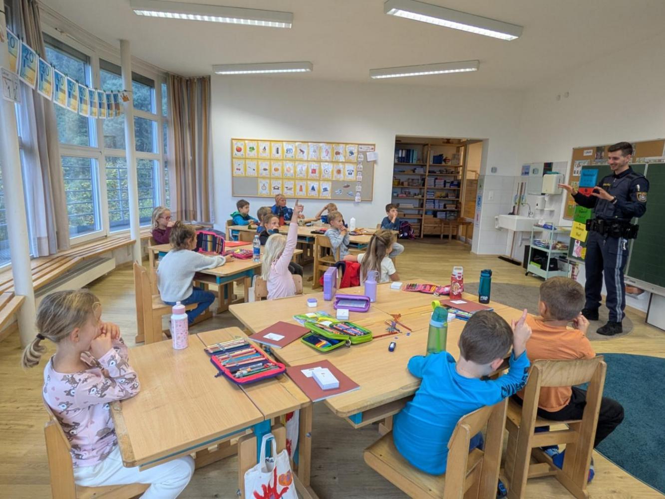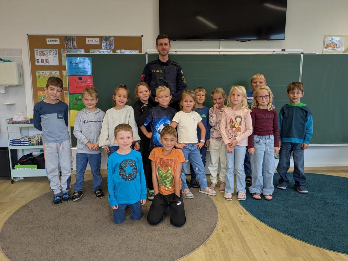 Am Dienstag, den 30. September 2025, bekam die 1. Klasse besonderen Besuch: Polizist Florian kam zu uns in die Schule.