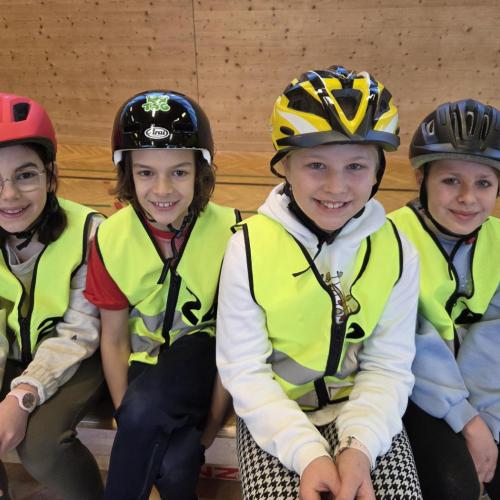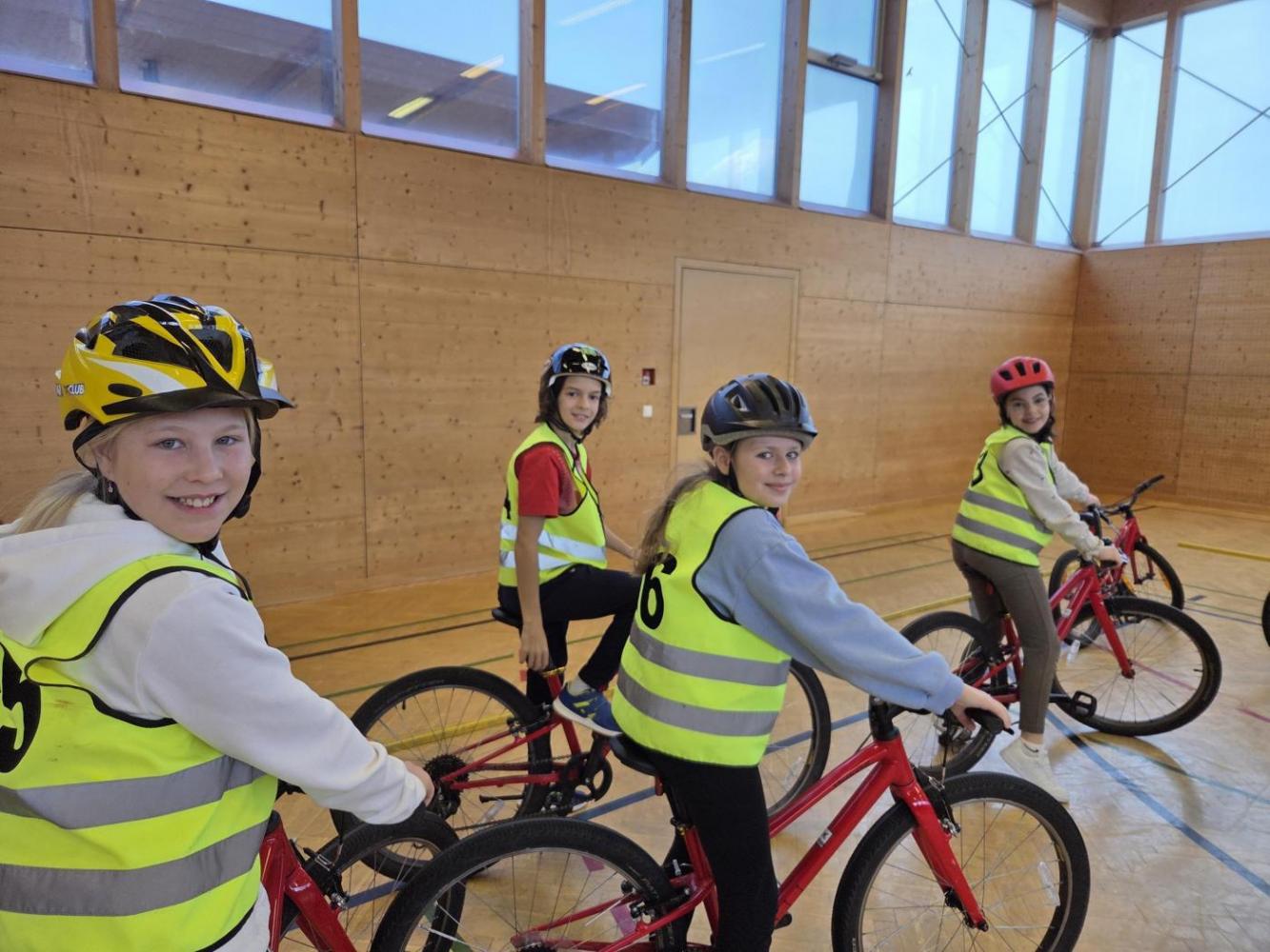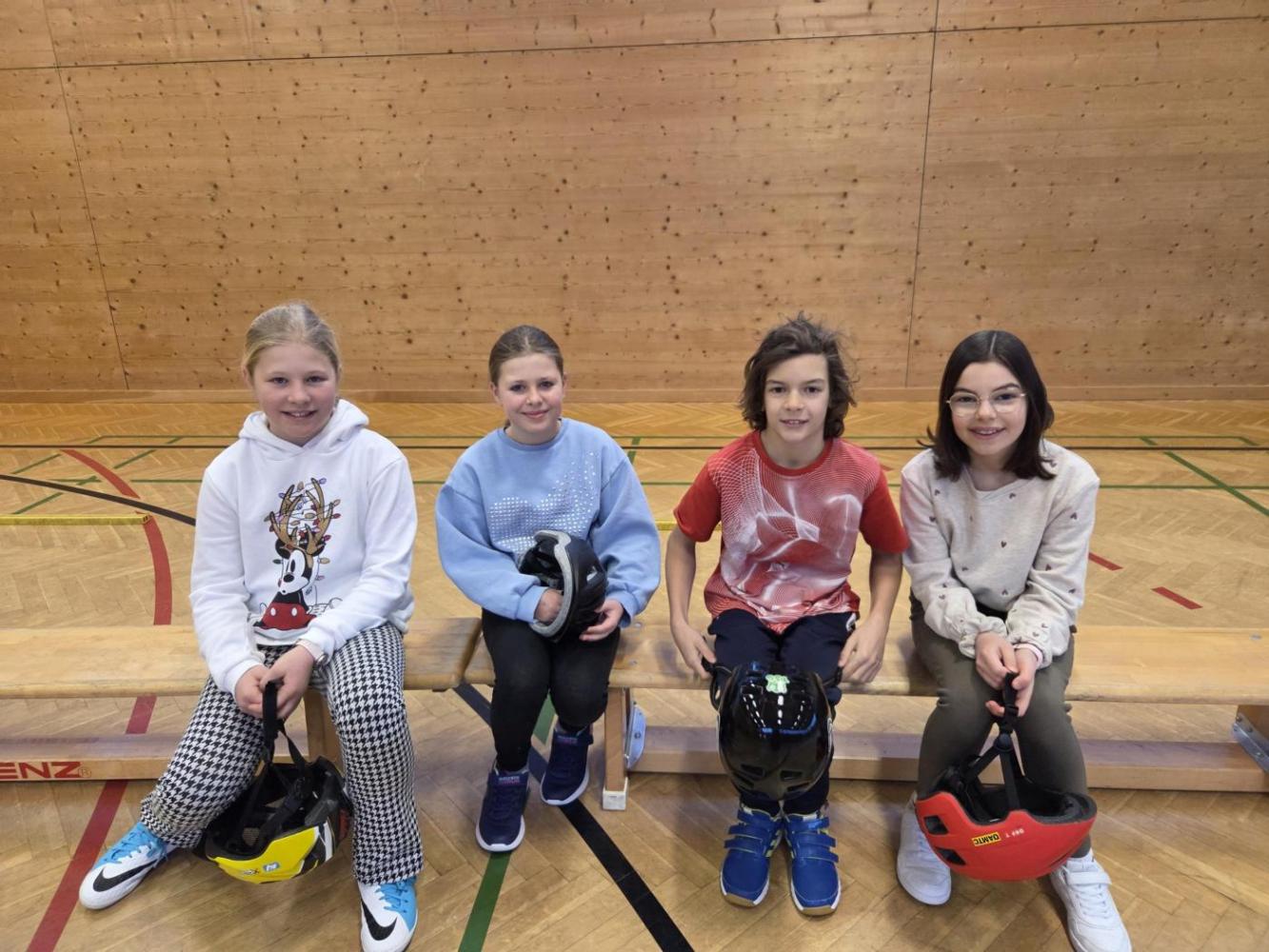 Die vier Kinder der 4. Stufe durften an einer spannenden Radfahrübung in der Volksschule Kolsass teilnehmen. Im Turnsaal lernten die Kinder wichtige Verkehrsregeln und übten, wie man sich richtig und sicher im Straßenverkehr verhält. Dabei bekamen sie tolle Unterstützung von der Polizei. Besonders das Linksabbiegen wurde genau geübt – natürlich mit den Fahrrädern direkt im Turnsaal!