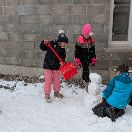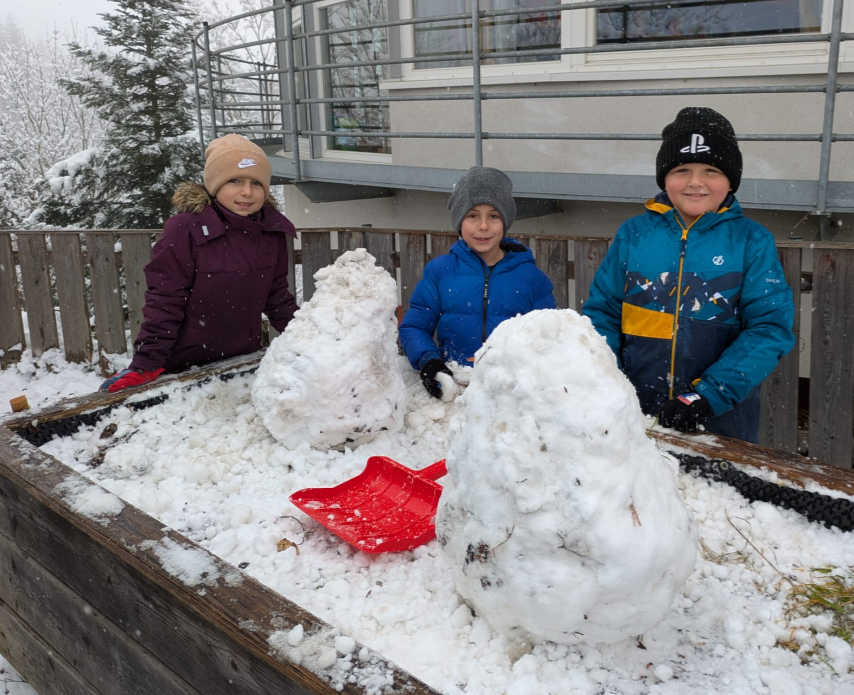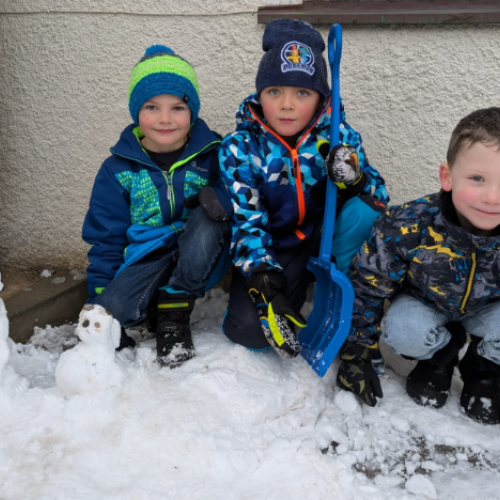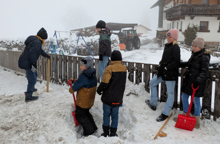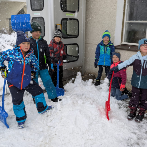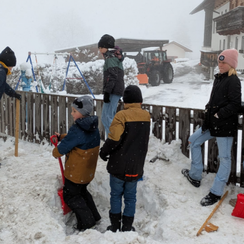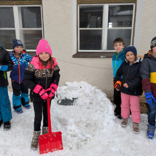 Heute hatten die Kinder die besondere Gelegenheit, den frisch gefallenen Schnee in vollen Zügen zu genießen. Ausgestattet mit Schaufeln und mit Unterstützung von Schneepflügen machten sie sich begeistert ans Werk. Ob beim gemeinsamen Spielen, Bauen oder einfach beim Genießen des Winterwetters – der Spaß stand eindeutig im Vordergrund.